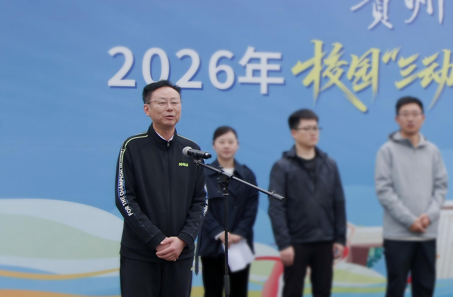 启动仪式上,杨天仪校长讲话,他指出本次活动是践行“运动”教育理念、推动师生加强体育锻炼、增进团队协作的重要举措,寄语全体师生以活动为契机走出教室、走出宿舍、走向操场,在运动中锤炼意志、凝聚力量,同时遵守活动规则、注意运动安全。