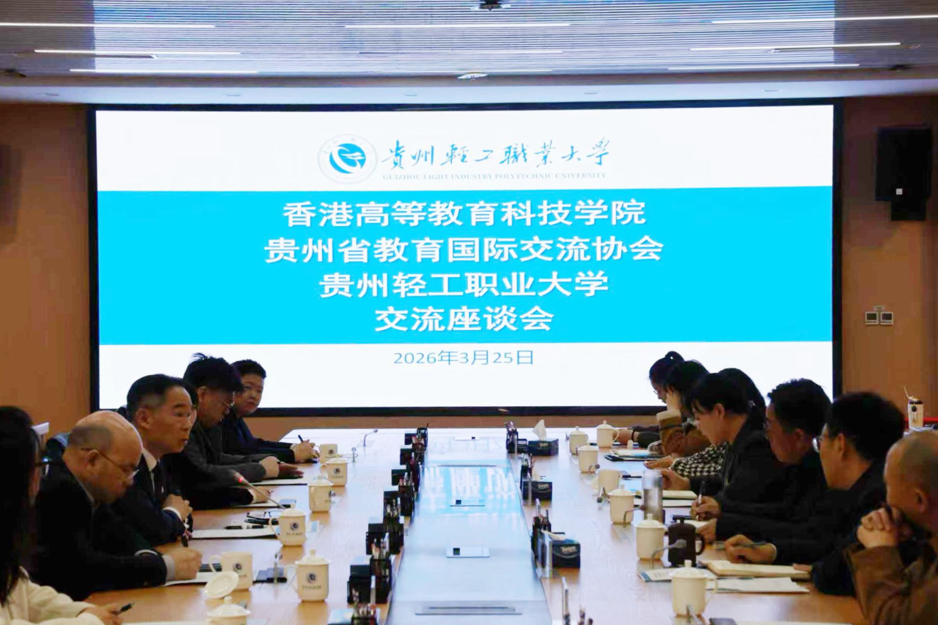 2026年3月25日上午,香港高等教育科技学院校长刘建德一行4人到学校访问交流,贵州省教育国际交流协会秘书长陈小飞陪同到访。学校党委副书记、校长杨天仪,党委委员、副校长王珂佳及相关部门、系部负责人陪同考察并参加座谈。