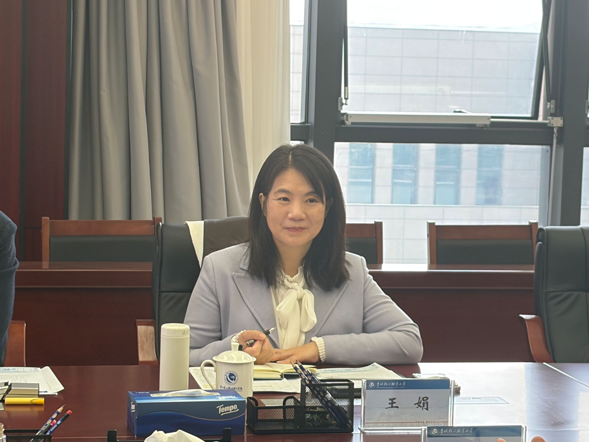 本次会议特邀天津轻工职业技术学院原党委书记、研究员戴裕崴,天津轻工职业技术学院国际交流与合作部部长、研究员王娟两位职教出海领域权威专家莅临指导。我校党委副书记、校长杨天仪,贵州电子商务职业技术学院党委副书记、院长王志亮,党委委员、副院长代欣等校领导及相关部门负责人参会,共同为“贵匠工坊”项目高质量发展建言献策。会议由我校党委委员、副校长王珂佳主持。