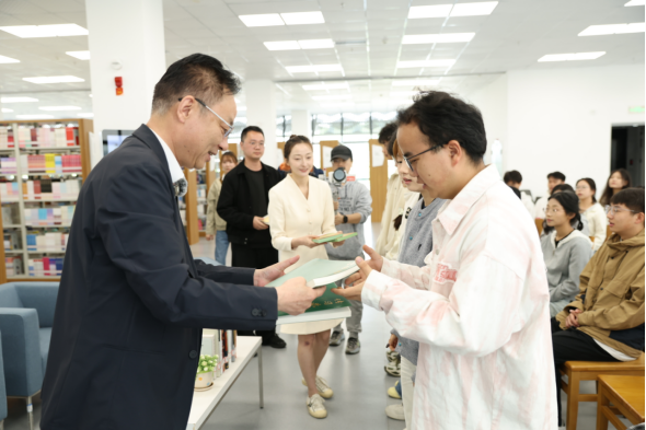 活动现场嘉宾们带领学生一起诵读《诫子书》,在朗朗书声中感悟先贤智慧,涵养修身立德的品格。最后,嘉宾们向学生代表赠送了书籍。