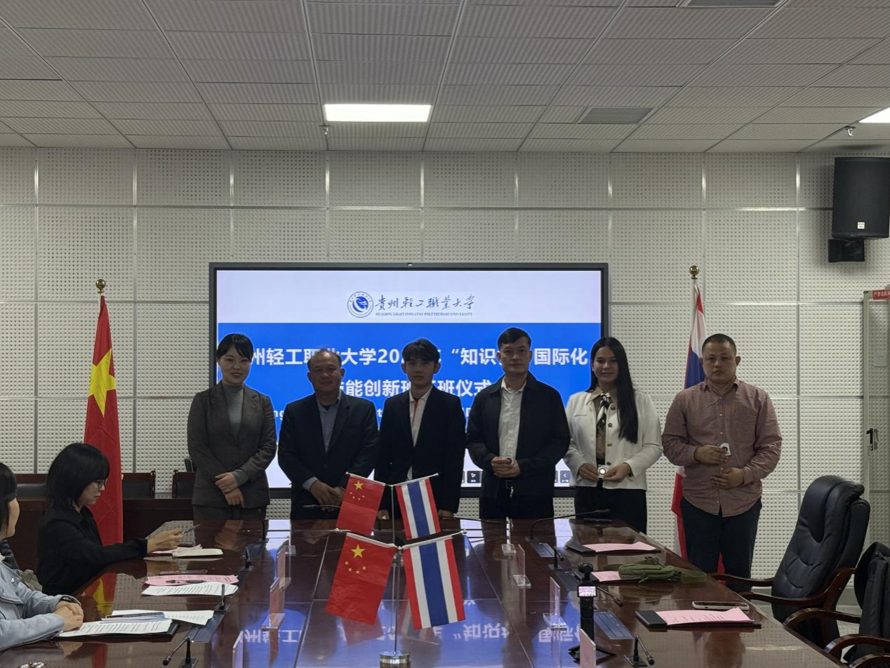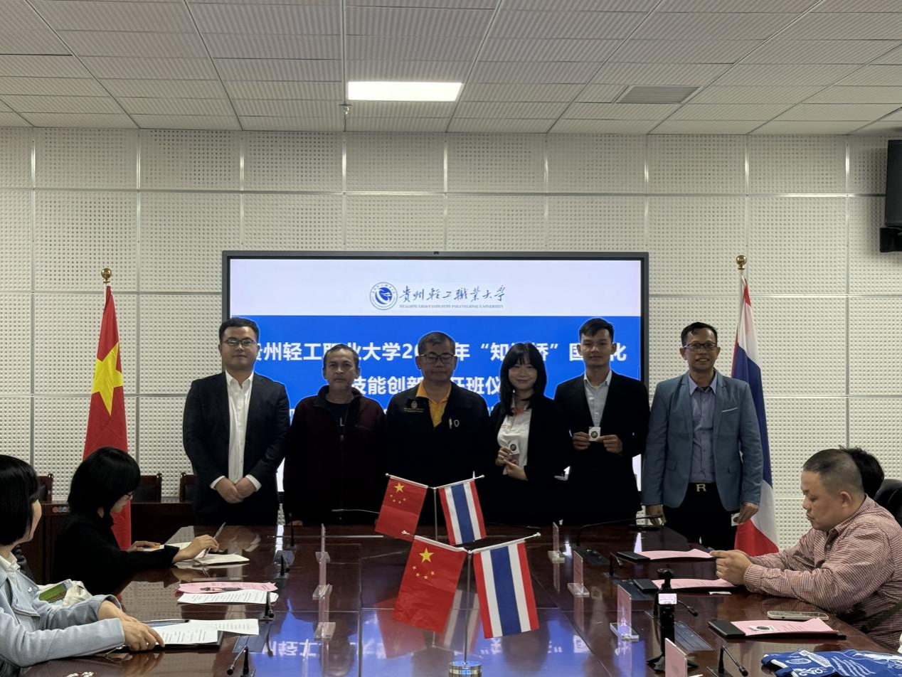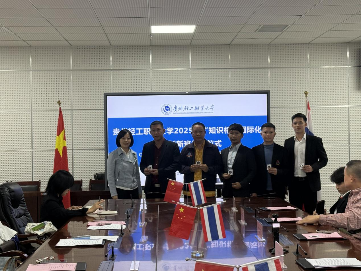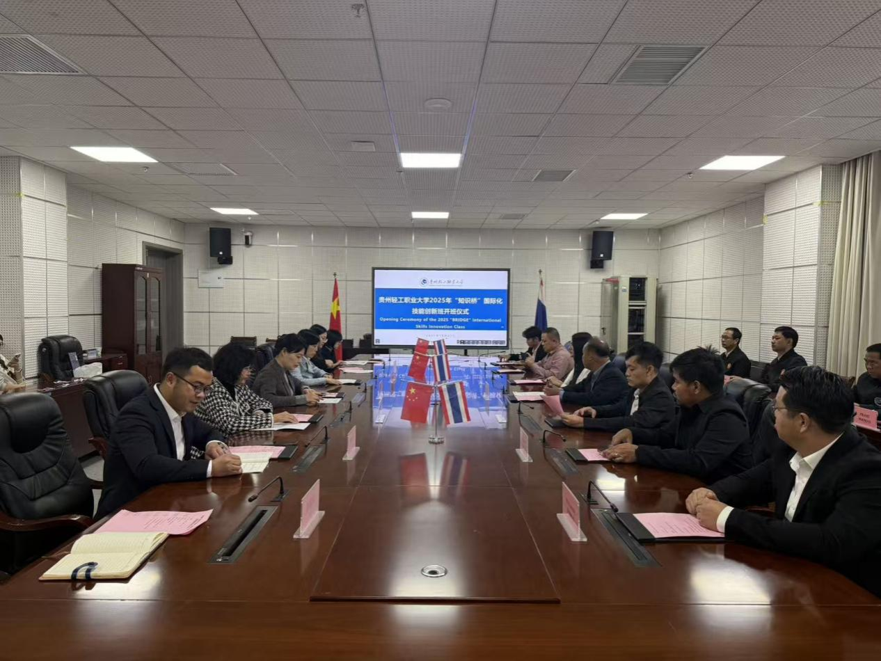 2025年10月27日下午,贵州轻工职业大学在行政楼427会议室隆重举行2025年“知识桥”国际化技能创新班开班仪式。怀卡托国际学院副院长张嫒婷主持仪式,怀卡托国际学院院长杨丽彦、机电工程系副主任陈华、怀卡托国际学院副院长杨远明以及来自泰国多所职业院校的“知识桥”项目20名学员共同参加了本次仪式。