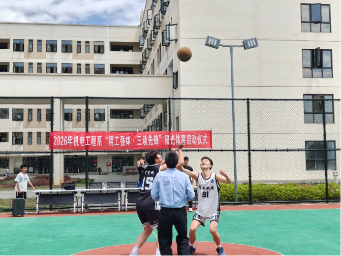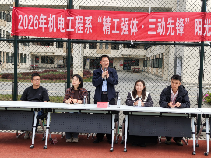 春风化雨润无声,五育并举谱新篇。为深入贯彻落实学校“三动”(运动、劳动、互动)育人理念,引导青年学子走下网络、走出宿舍、走向操场,4月10日中午,贵州轻工职业大学机电工程系在兰苑运动场隆重举行2026年春季“精工强体·三动先锋”主题活动启动仪式。系党总支书记韩飞、系党总支副书记李静出席仪式,师生代表齐聚一堂,共同见证这场青春盛会的开启。