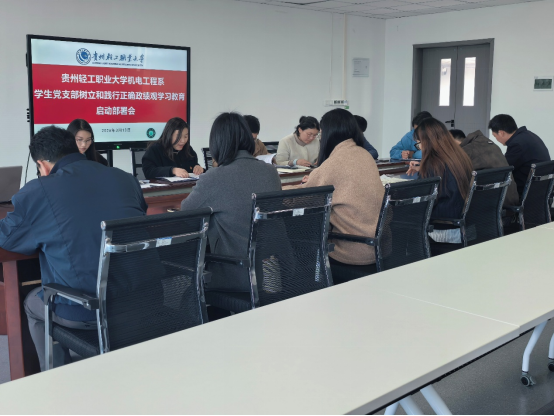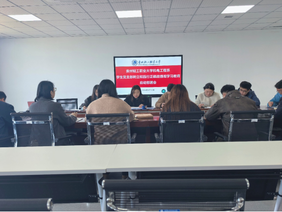 2026年3月13日15:00,贵州轻工职业大学机电工程系学生党支部组织召开“树立和践行正确政绩观学习教育”启动部署会。会议深入学习贯彻习近平总书记重要讲话及指示批示精神,全面传达上级有关文件要求,对本支部开展学习教育工作进行动员与部署,机电工程系学生党支部书记董慧娟主持会议。