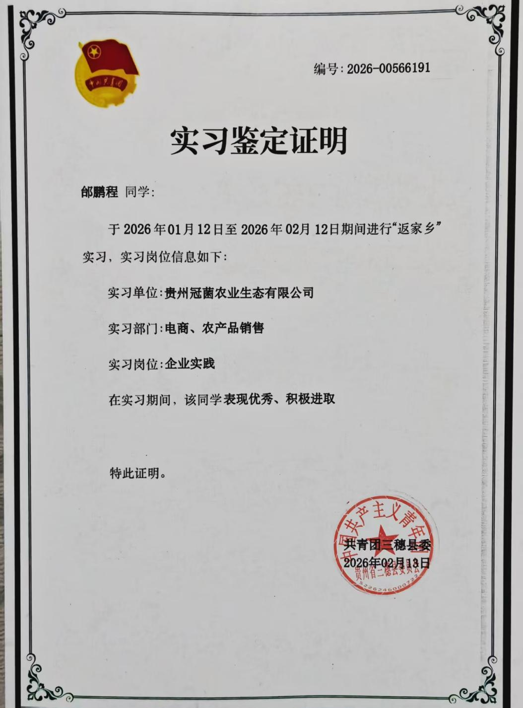 寒假期间,经济管理系2025级现代物流管理(本科)2班学生邰鹏程积极响应“返家乡”社会实践号召,回到家乡三穗县,扎根基层一线,以实际行动参与乡村振兴建设,在实践中受教育、长才干、作贡献。