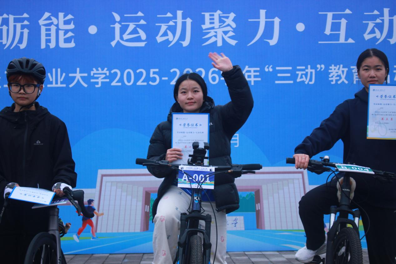 在紧接着展开的迷你马拉松与自行车比赛中,我系学子奋勇拼搏,展现出卓越的竞技状态和良好的精神风貌,并取得了优异成绩。其中,袁梦钰同学表现尤为抢眼,不仅在马拉松女子组中获得第七名,更在自行车比赛中勇夺女子组桂冠;黄彤同学荣获马拉松女子组第六名;吴俊杰同学获得自行车男子组第七名。 他们用汗水与速度生动诠释了“三动”教育的内涵,为经济管理系赢得了荣誉。