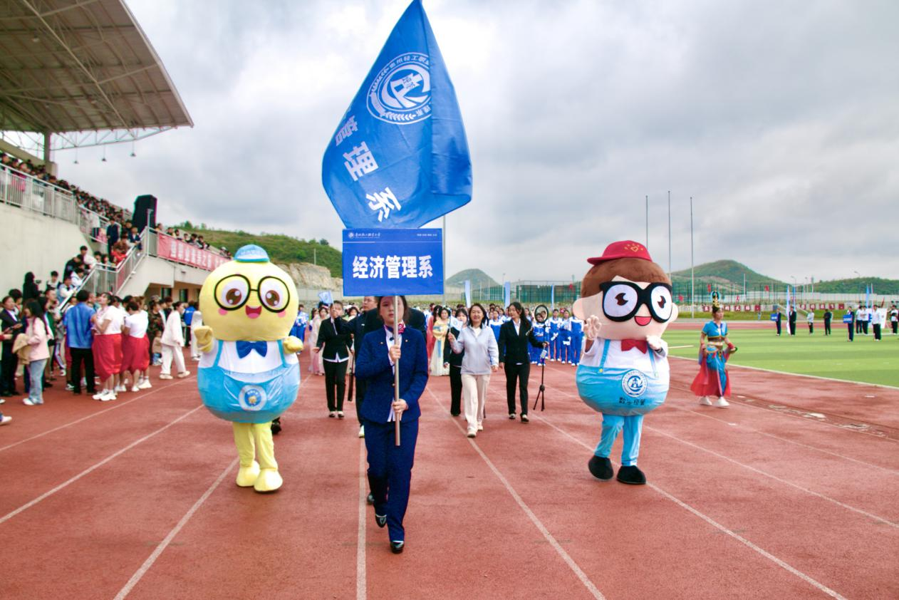 4月22日上午,贵州轻工职业大学足球场彩旗招展、人声喧闹,2026年春季运动会开幕式在这里隆重举行。经济管理系方阵迈着铿锵的步伐有序入场,同学们身着统一着装,步伐规整有力,一张张朝气蓬勃的脸庞,尽显经管学子昂扬向上、意气风发的青春模样。