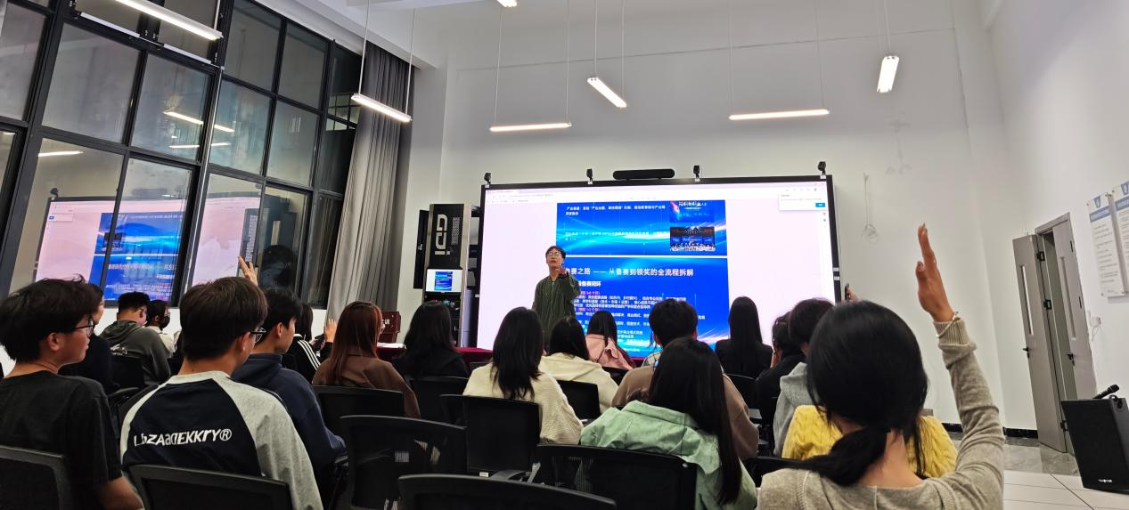 在互动环节,同学们围绕项目方向、资源支持、参赛机会等内容踊跃提问,况海东同学一一作出详细解答,现场交流氛围融洽。