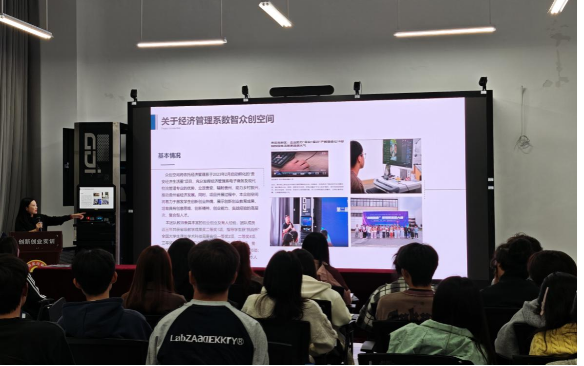 2025年9月25日晚7点,贵州轻工职业大学经济管理系数智众创空间在通达楼A109教室成功举办创新创业项目介绍会。本次会议面向已递交创新创业训练营报名表的2025级新生,介绍众创空间的建设背景、师资力量、项目成果与未来规划,一方面为即将开展的创新创业大赛进行动员与预热,另一方面则帮助新生深度理解平台价值,为其融入项目团队奠定坚实基础。开场由数智众创空间核心指导教师刘韵博士系统地对众创空间的成立背景、发展目标...