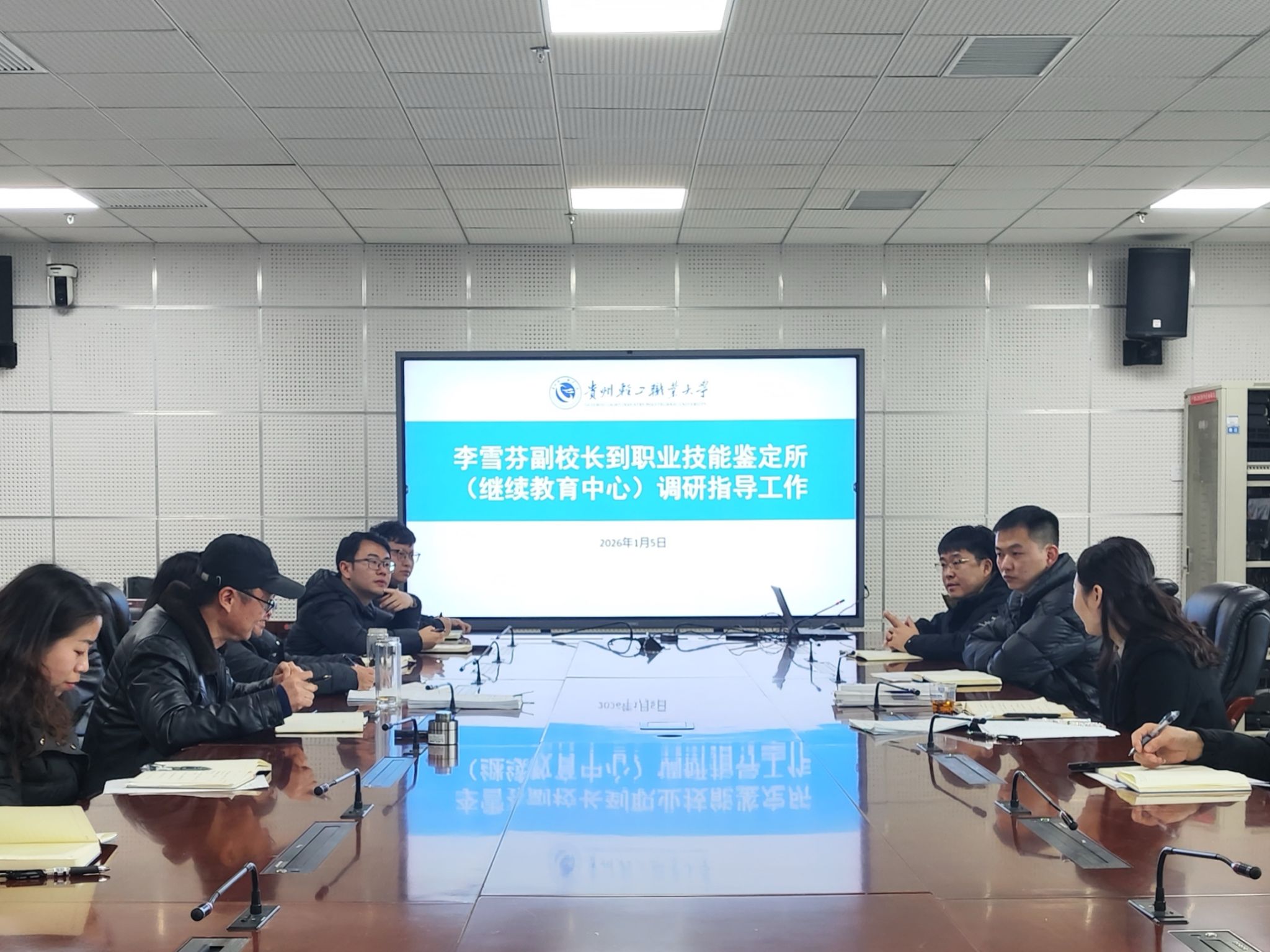 2026年1月5日,学校党委委员、副校长李雪芬深入继续教育中心(职业技能鉴定所)开展调研指导工作。继续教育中心(职业技能鉴定所)全体工作人员参加调研座谈。会议由黄涛主任主持。