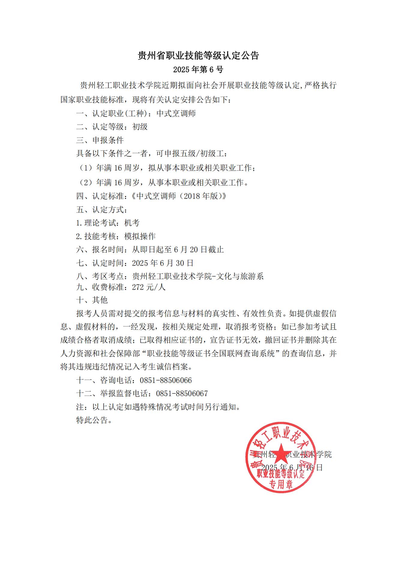2025年贵州省职业技能认定公告(社会)第6号