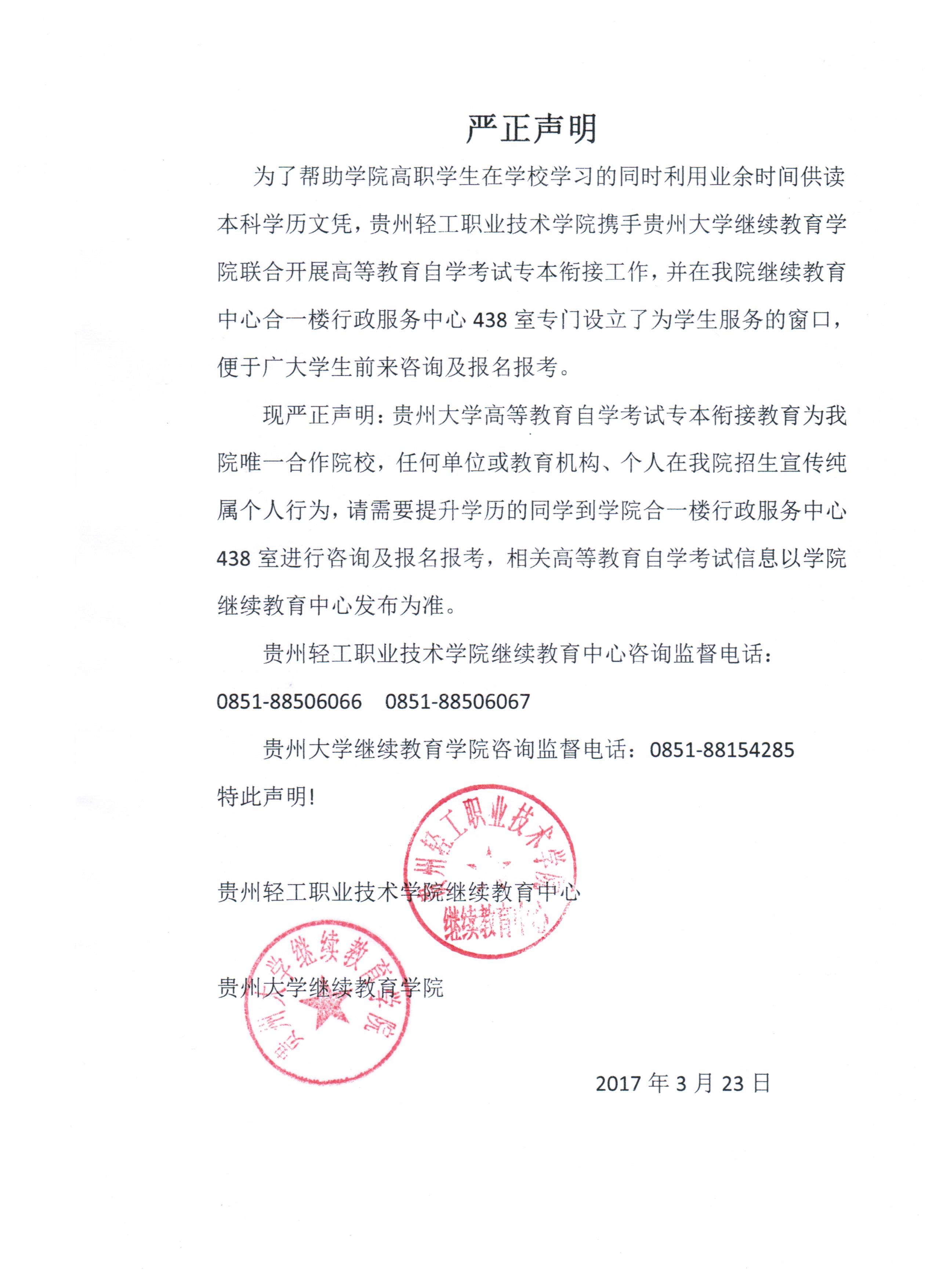 继续教育中心关于高等教育自学考试(专本衔接)招生宣传的严正声明