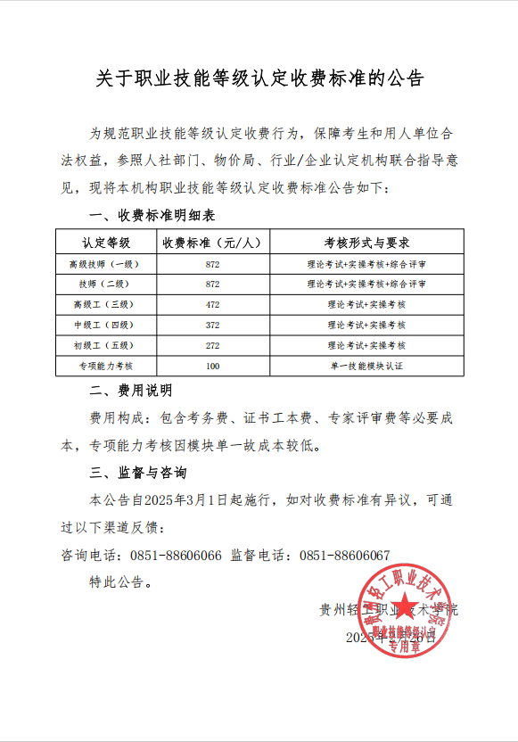 贵州轻工职业技术学院职业技能鉴定管理办法(试行)