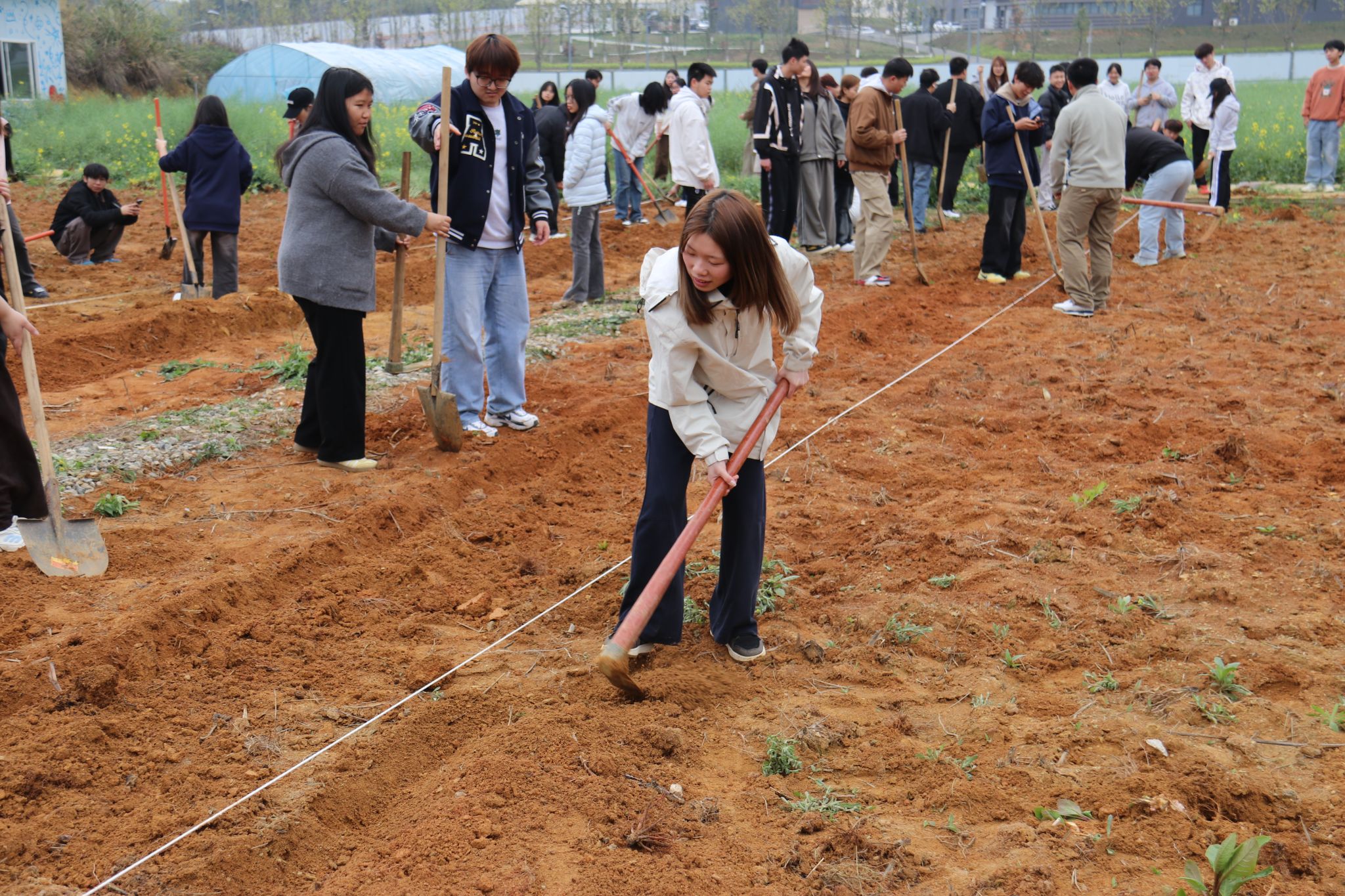 春分过后,万物复苏,劳动教育基地里一片繁忙景象。轻工化工系的同学们挽起袖子、扛起锄头,在实践指导员的带领下,开启了本学期的春耕劳动实践。翻土、起垄、拉线、成行……同学们分工协作,将原本平整的土地整理成一垄垄整齐的田畦。泥土的芬芳夹杂着青春的汗水,在春日阳光下格外动人。