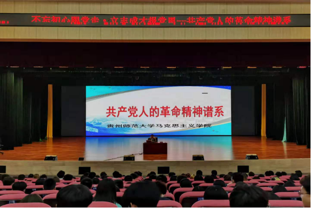 讲座中贵州师范大学马克思主义学院权麟春教授。生动形象的讲述了共产党人的革命精神谱系,从南湖红船出发,我们党走向井冈山,走向延安,走向西柏坡……我们党始终能够把握时代的脉搏和潮流,红船精神同井冈山精神、长征精神、延安精神、西柏坡精神等一道,伴随中国革命的光辉历程,共同构成我们党在前进道路上战胜各种困难和风险、不断夺取新胜利的强大精神力量和宝贵精神财富。讲座脉络分明、内容丰富,是一堂生动的党史课。激发全体教师和学生的爱党爱国爱社会主义的巨大热情。