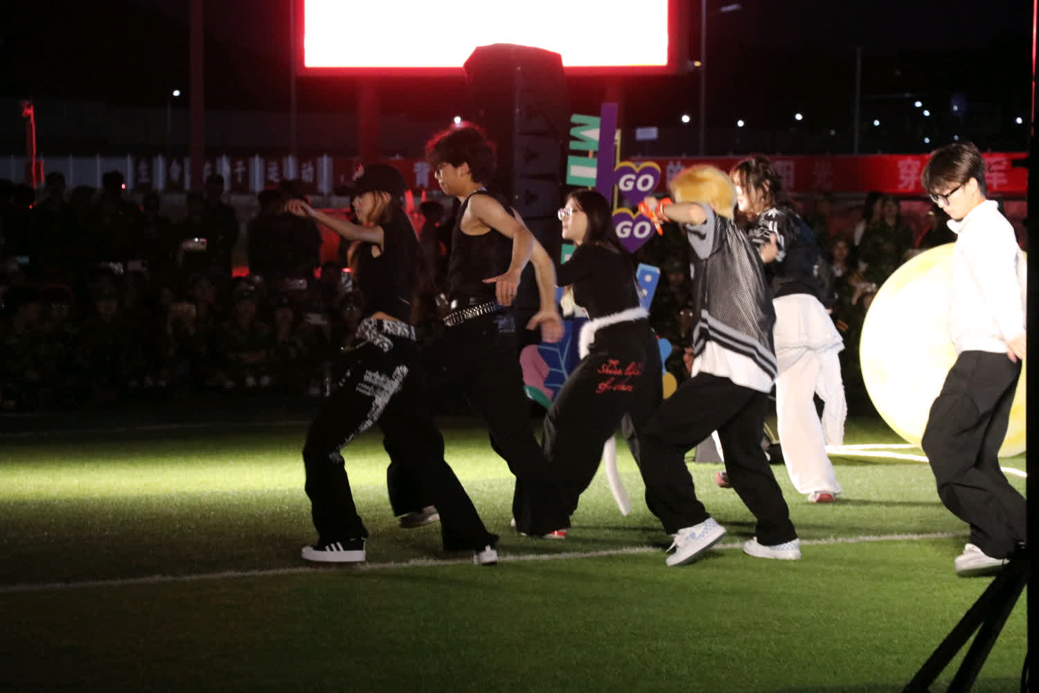 镁光灯划破操场夜色,吉他社的弦音、街舞社的旋步与舞蹈团的舞步番炸场——街舞社把“军训模式”秒切“演唱会模式”,用节拍为新生卸下一身疲惫,用欢呼把疲惫晒成星光。此刻没有连旗方阵,只有荧光海洋;不必踢正步,只需一起跳!慰问,就是把最燃的舞台,献给最飒的青春。