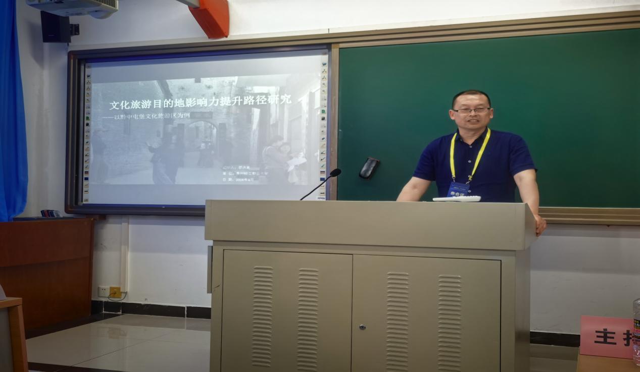 与会期间,廖洪泉教授在分论坛上作了题为《文化旅游目的地影响力提升路径研究——以黔中屯堡文化旅游区为例》的学术发言。报告立足文旅高质量发展与高水平开放背景,以旅游目的地竞争力“吸引力+影响力”双系统理论为基础,构建文化旅游目的地影响力“两层四维”模型,系统剖析了黔中屯堡文化旅游区影响力提升的现实困境与突破方向。报告内容引发了与会专家学者的广泛关注与深入讨论。