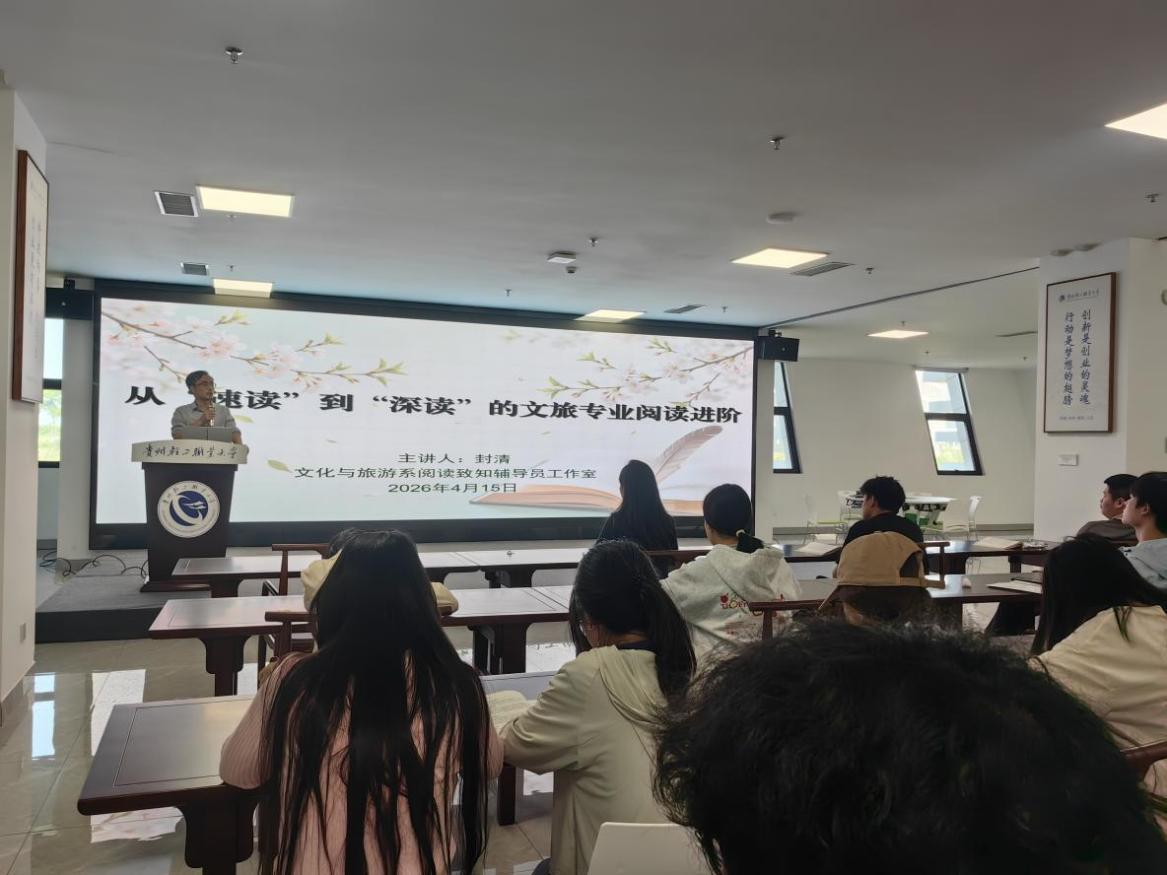 2026年4月15日,首个“全民阅读活动周”来临之际,文化与旅游系阅读致知辅导员工作室以“慢阅读·深思考”为主题,成功举办“一场讲座+一场体验”系列阅读活动。活动聚焦学生碎片化阅读、速成式学习、深度思考不足等问题,倡导深度沉浸、主动思考的“慢阅读”理念,推动“数智阅读文化铸魂”与专业学习深度融合。