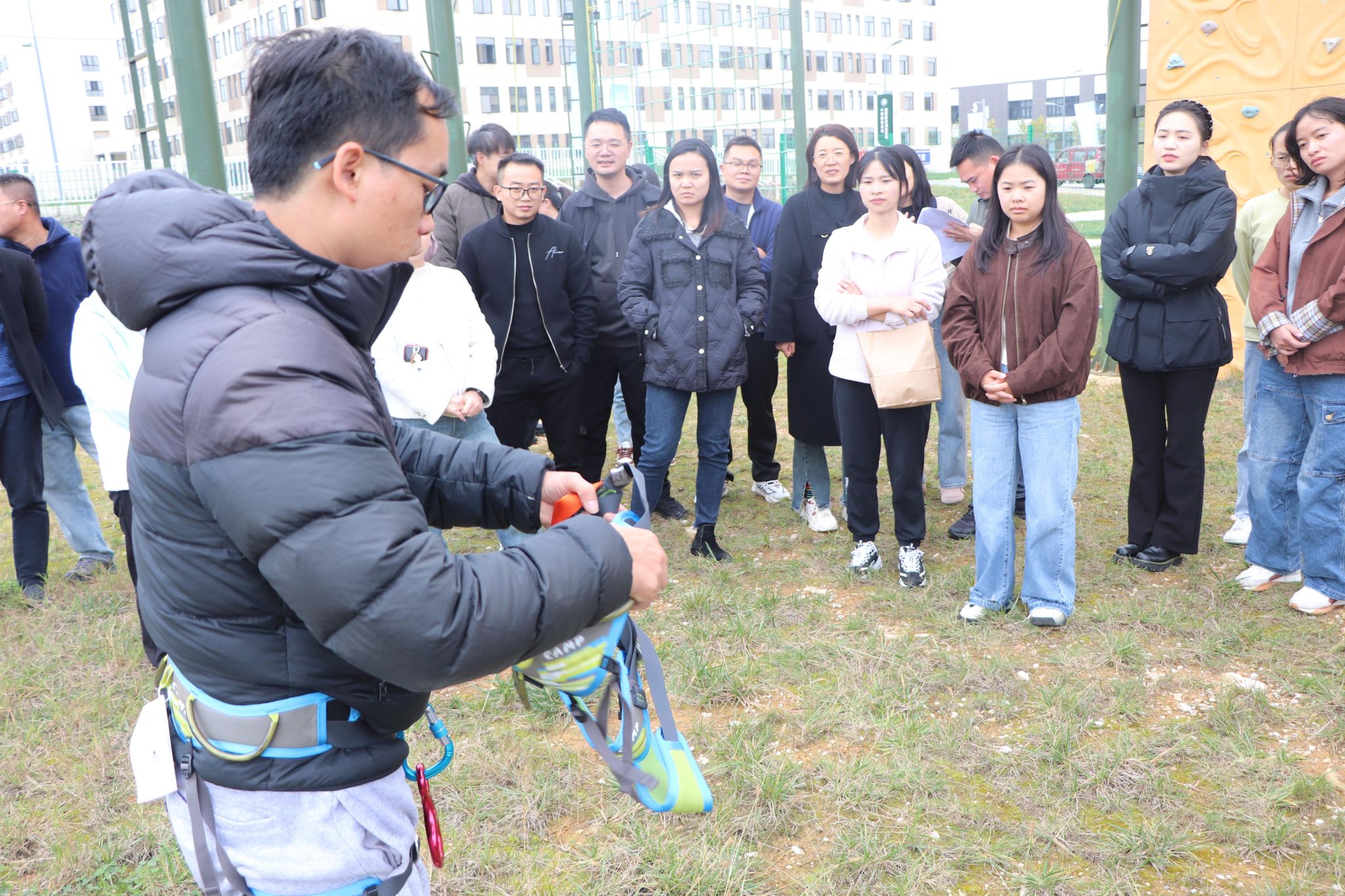 活动当日,参与活动的辅导员老师们在教练员陈富有老师的指导下,认真学习了攀岩的基本技巧、装备使用方法和安全注意事项。随后,老师们纷纷摩拳擦掌,跃跃欲试。