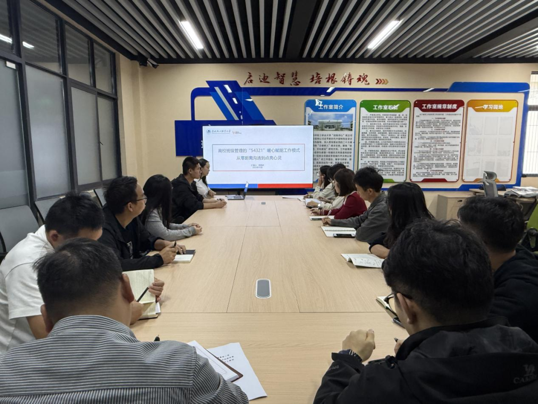 为进一步提升我校辅导员综合素养,学校于10月16日在“一站式”学生社区组织开展专题培训沙龙活动,活动由“启智润心”班主任工作室主持人周菀娇主讲。周菀娇老师以“高校班级管理的“54321”暖心赋能工作模式——从零距离沟通到点亮心灵”为主题,立足高职学生的发展特点和成长规律,结合自己多年的班主任工作实践,探索出了“54321”暖心赋能工作模式,她以生动的案例深度拆解“暖心赋能”理念如何落地班级管理全流程,为班级管理工作提供可借鉴、可复制的实践路径。