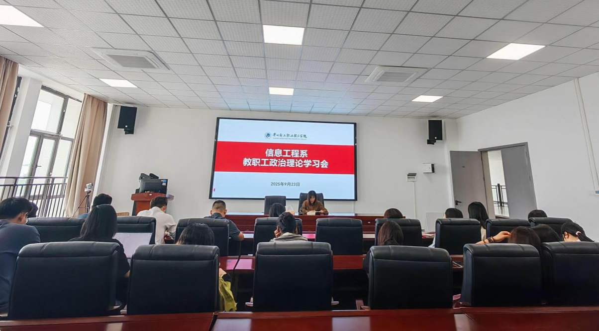 为深入贯彻落实习近平新时代中国特色社会主义思想,推动理论学习与专业实践深度融合,2025年9月23日中午,信息工程系在衍数楼311会议室组织召开政治理论学习会暨《习近平谈治国理政》第五卷专题学习会,系部全体教职工参会。