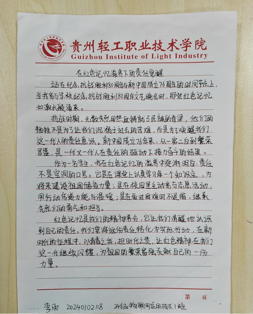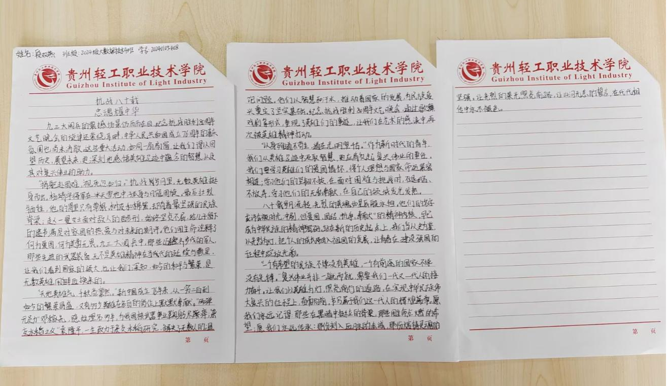 此次系列活动的获奖作品,是信息工程系学子铭记历史、传承精神的生动体现。希望获奖创作者珍惜荣誉,持续以文字、手工等形式传递红色力量。也号召全系学子以获奖作品为榜样,将抗战精神与爱国情怀融入学习生活,为中华民族伟大复兴贡献青春力量。